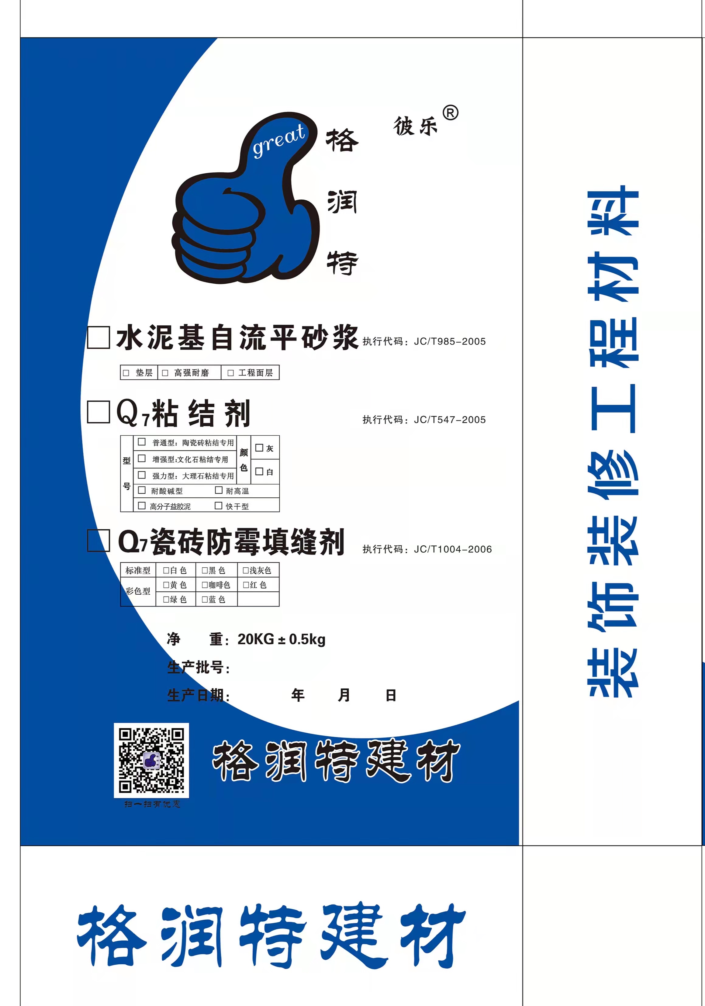 外觀: 自由粉體狀   色澤: 灰色、綠色、紅色或其它顏色等   粘結料: 普硅水泥、高鋁水泥、硅酸鹽水泥等   附加劑: 多種表面活性助劑及分散乳膠粉   水料比: 5升/25kg     室內民用自流平   干基密度: 1.5公斤/升